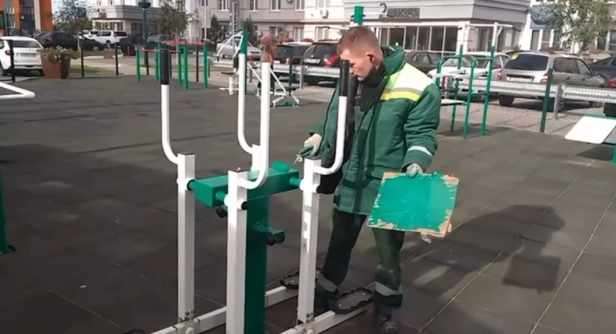 На этой неделе провели плановую покраску всех металлических конструкций: турников, тренажёров.