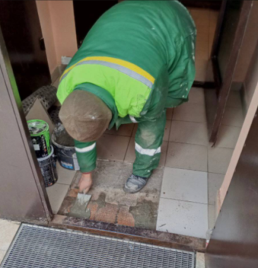 В подъезде дома на Космодемьянской, 18 провели реставрацию напольной плитки