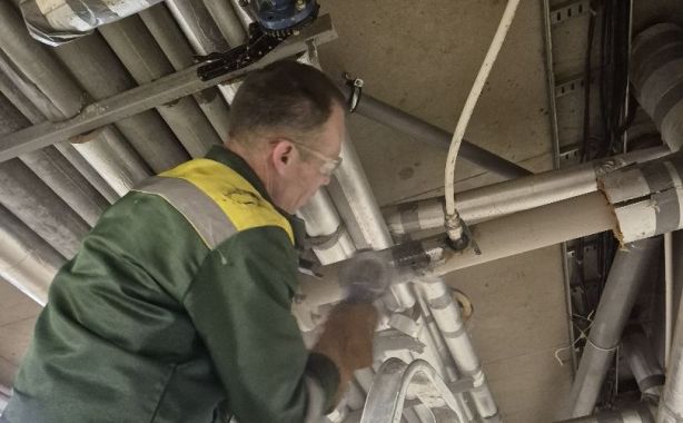 Начальник участка УЖК «Зелёный сад - Мой дом» Олег Гуськов: «Обнаружили свищ на магистральной трубе горячего водоснабжения. Временно был установлен хомут, всё приводим в соответствие с требованиями технического регламента».