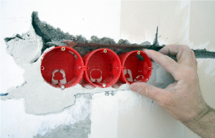 Устройство подрозетников, распаечных коробок в кирпиче (устройство отверстия, установка подрозетника)